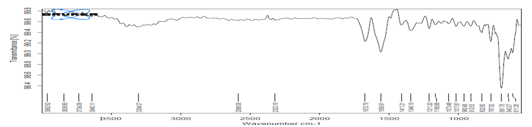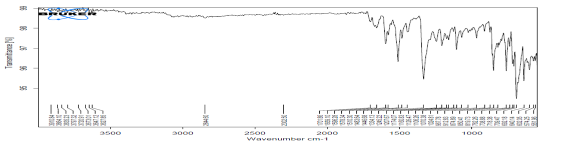 Infrared spectroscopy measures the interaction of infrared radiation with matter through absorption, emission, or reflection. It is utilized to analyze and identify the functional groups in synthesized compounds. The region to analyze is 4000- 400cm-1.