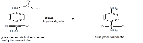 1. Fill a 500 ml flask with the crude p-acetamidobenzene sulphonamide and add 30 ml of water and 10 ml of strong hydrochloric acid.