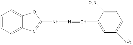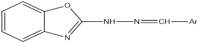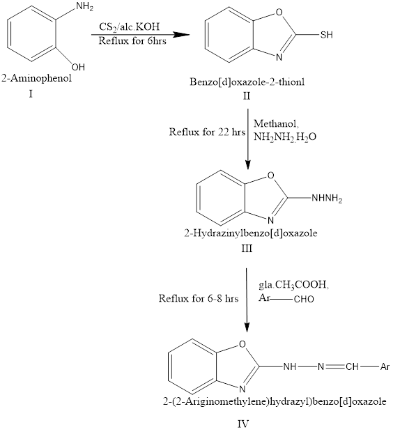 An appropriate aromatic aldehyde and 2-hydrazinylbenzo[d]oxazole(III) were dissolved in methanol , 1-2 drops glacial acetic acid was added and refluxed for 6-8h.The mixture was kept in refrigerator overnight. The product obtained was filtered, dried and purified by recrystallization.