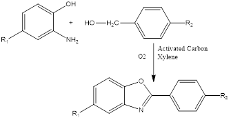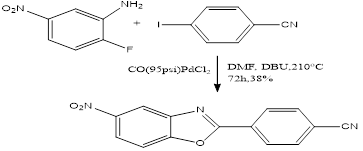 2-Aryl and 2-heteroaryl-bezoxazoles were prepared by Pd- catalyzed three-component condensation of aryl halides with o-aminophenols and carbonmonoxide followed by the dehydrative cyclisation8,9. A variant of such methodology using o-flourephenylamines in place of o-aminophenols was used to synthesized arylbenzoxazoles.
