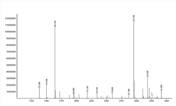 Mass Spectral data of 2-(2-Ariginomethyelene) hydrazyl) benzo[d]oxazole IV