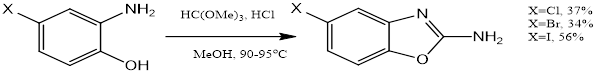 While halogenation and Sandmeyer reaction are suitable for preparation of oxazolyl halides, benzoxazolyl halides with halogen on the benzene ring moiety may be synthesized via other approaches. For instance, 5-halobenzoxazoles4 were prepared by treating 4-halo-2-aminophenols with trimethyl orthoformate and concentrated aqueous HCL.