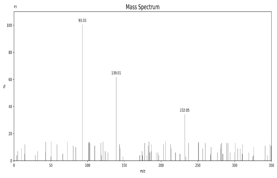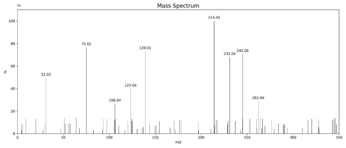 Figure 11: Mass spectra of 5-(4-Chloro) Benzylidene barbituric acid:
