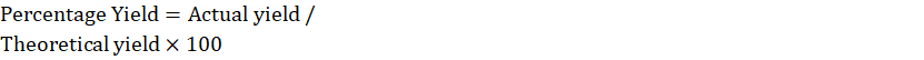 Percentage of yield: Percentage Yield=Actual yield /Theoretical yield×100