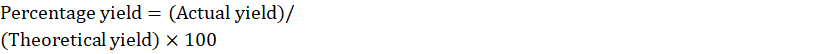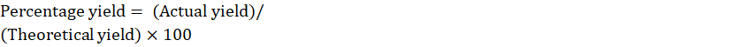 Percentage of yield: Percentage yield= (Actual yield)/(Theoretical yield)×100