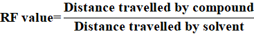 RF value=Distance travelled by compoundDistance travelled by solvent