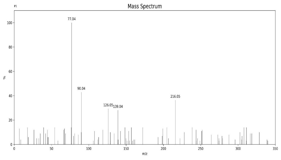 Figure 8: Mass spectra of 5-Benzylidene BA: