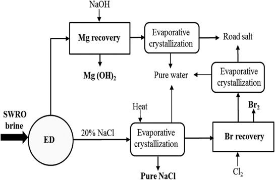 Membrane Distillation Crystallization (MDC) is a sophisticated method for the recovery of minerals from seawater brines. MDC employs membrane distillation (MD), in which a hydrophobic microporous membrane is used to demarcate the distilled water from the brine solution. The hydrophobic nature of the polymeric membrane keeps the water from passing through the pores, developing a vapour-liquid interface at the pore entrance. On the hot side (retentate), water evaporates, travels through the membrane, and condenses on the chilled side (distillate). In MDC, a hydrophobic hollow fiber membrane module is employed to provide fine control of supersaturation of salts, with crystallization taking place in a circulating crystallizer and recovery in a system to avoid salt build-up within the MDC unit. The process causes supersaturation and results in a metastable solution in which crystallization, comprised of nucleation and growth, occurs. MDC is a great method of brine concentration because it has very controlled levels of supersaturation. It also produces crystals of higher quality than do other solid separation operations like cooling or evaporative crystallization.