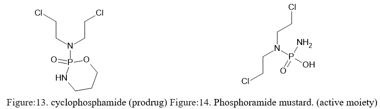 Microsomal enzymes mediate the bioactivation of cyclophosphamide (CPA) in the presence of cofactors like nicotinamide adenine dinucleotide phosphate. The first byproduct of CPA metabolism is 4-hydroxy-CPA, which opens its rings to yield aldophosphamide. Phosphor amide mustard is produced when aldophosphamide breaks down due to a spontaneous β elimination.(22 ) Phosphamides, an enzyme that hydrolyses the phosphorus–nitrogen bond and releases the cytotoxic nitrogen mustard, is highly expressed in tumour cells, which is the basis for the chemical design of CPA.(26)