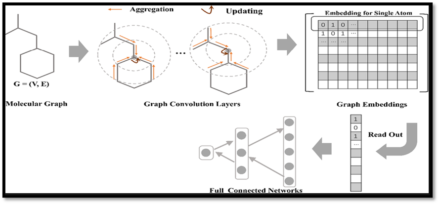 Unlike traditional neural networks that process images or text, GNNs operate directly on molecular graphs atoms as nodes, bonds as edges capturing connectivity and chemical context (Zhang et al., 2025).