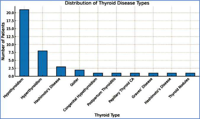This study explores the prevalence, clinical characteristics, and management approaches of thyroid disorders, with a primary focus on hypothyroidism and hyperthyroidism, across diverse patient populations. By analyzing patient data—including demographics, symptom profiles, and comorbid conditions—the research underscores both the widespread nature and the intricate presentation of thyroid dysfunction. Key risk factors such as iodine deficiency, autoimmune diseases, certain medications, and lifestyle influences are also examined. The study emphasizes the critical importance of early detection, patient awareness, and appropriate therapeutic interventions to minimize long-term complications and enhance clinical outcomes.