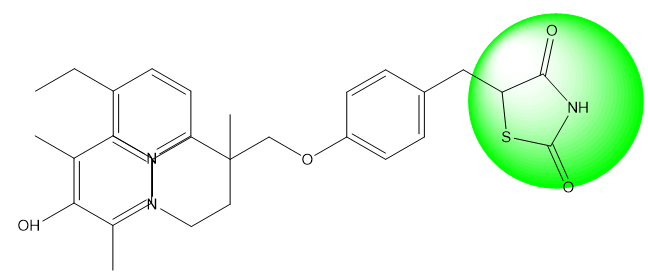 Thiazolidinedione are commonly used as hypoglycaemic agent in the treatment of diabetes for the last fourty years. Ciglitazone is one of the example of thiazolidinedione class of drugs. Ciglitazone developed by Takeda Pharmaceuticals in Japan was first introduced in the market during the early 1980s, [19]. Despite its potential as a therapeutic agent, its effectiveness in treating certain conditions has not been fully realized. The hepatotoxic properties of this substance have been realized. In 1988 , the Daiichi Sankyo a global Pharmaceutical Company of Japan developed the Thiazolidinedione analogue Troglitazone to treat various medical conditions. As a treatment for diabetes, this medication can be used to regulate blood sugar levels. However, its toxicity to the liver led to its discontinuation. In the year 2000, a ban was implemented, prohibiting the use of the product. [13]. In 1999, Takeda and Pfizer was developed two drugs called Pioglitazone and emglitazone.However , emglitazone was banned due to side effects on the Liver. In contrast, Pioglitazone was declared safe for the treatment of liver disease. Meanwhile, rosiglitazone and daglitazone are manufactured by SmithKline and Pfizer. They were shown to cause heart failure due to fluid retention and heart failure. The Pioglitazone drug was removed from Food and Drug Administration restriction because it failed to prevent heart attacks. [14,20]. Development of a new partial PPAR-γ agonist balaglitazone as an Antihyperglycemic agent, Dr. Reddy's laboratory iscurrently conducting phase 3 clinical trials in the US and Europe.[14]. In 2013, Chong Kun Dang (Korea) successfully developed a new pharmaceutical compound, namely lobeglitazone. The drug has been approved by the Ministry of Food and Drug Safety. [21]. Fig. 3 displays the structure of various clinically reported thiazolidinedione drugs.[13,22]