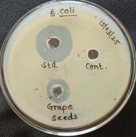 Ekta Dudhal, Rutuja Kolekar, Suvasini Sukhsare, Anuja Patil, Deepak Kare, To Study the Antibacterial Activity of Grape Seeds, Int. J. of Pharm. Sci., 2025, Vol 3, Issue 6, 1564-1568. https://doi.org/10.5281/zenodo.15618016