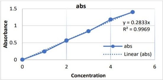 A calibration curve for Rizatriptan benzoate was constructed by measuring the absorbance of standard drug solutions of different concentrations at 227 nm using a UV–Vis spectrophotometer. The absorbance values were plotted against concentration to obtain the calibration plot. The high correlation value (R² = 0.998). The high correlation value indicates excellent linearity, confirming adherence indicates excellent linearity, confirming adherence to Beer-Lambert’s law. The results are presented in Table 3 and Figure 2