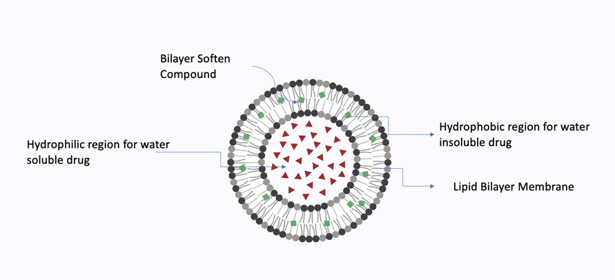 Extremely adaptable and resilient under stress, these are a complex aggregate. The vesicle's local composition and bilayer form independence allow it to be both self-regulating and self-optimizing. This makes it possible for transferosomes to effectively pass through a number of transport barriers before serving as a drug carrier for targeted, non-invasive medication delivery and prolonged release of therapeutic agents. [30]