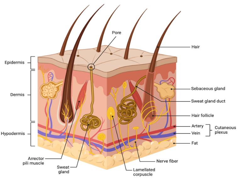 (Fig:1) Shows the skin anatomy and physiology and what are present beneath our skin or into our skin layer.