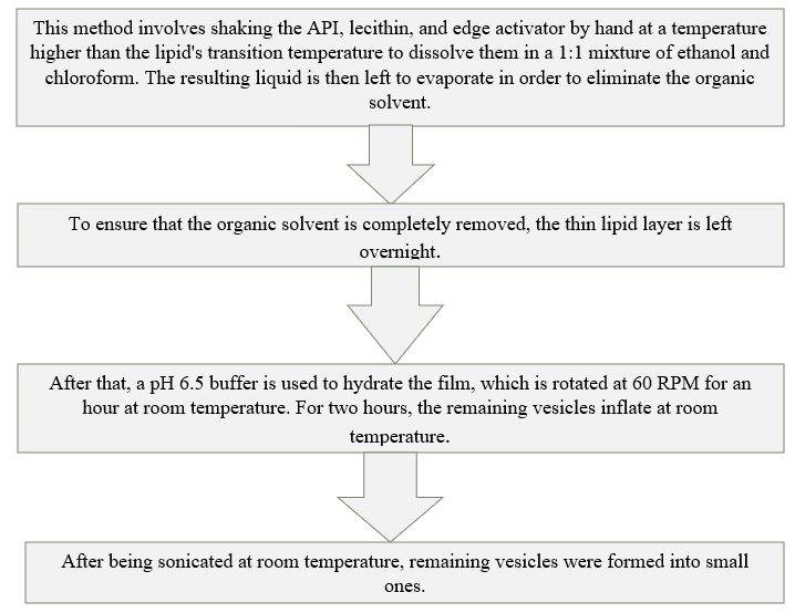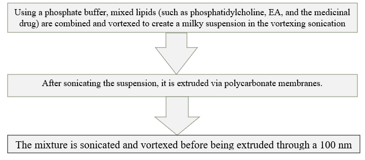 The Rotary Flask Evaporation-Sonication method was used to create transferosomes with an antifungal drug. The Plackett-Burman design was used to determine important formulation and process factors, such as the volume of ethanol and hydration medium, the amount of lipid and surfactant, and the hydration time, that have an impact on vesicle size .