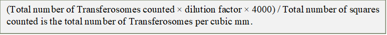 (Total number of Transferosomes counted × dilution factor × 4000) / Total number of squares counted is the total number of Transferosomes per cubic mm. |