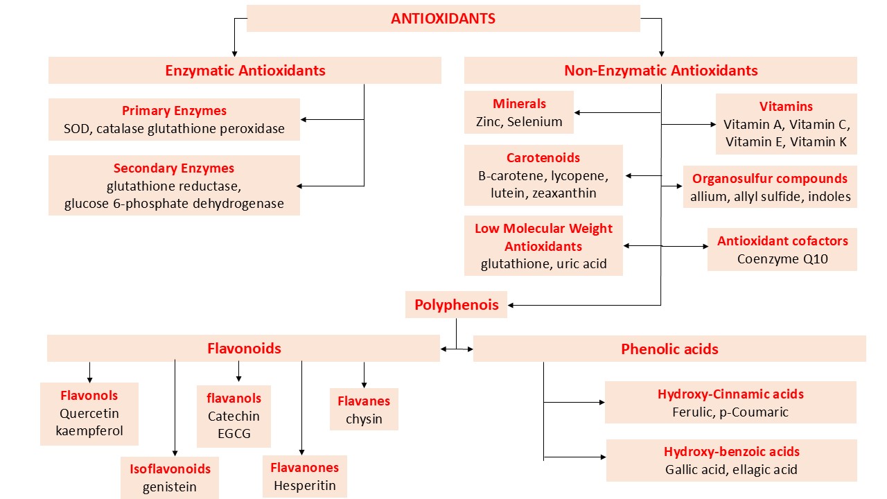 These are small molecules that can donate electrons to free radicals, neutralizing them. They can be further divided into: