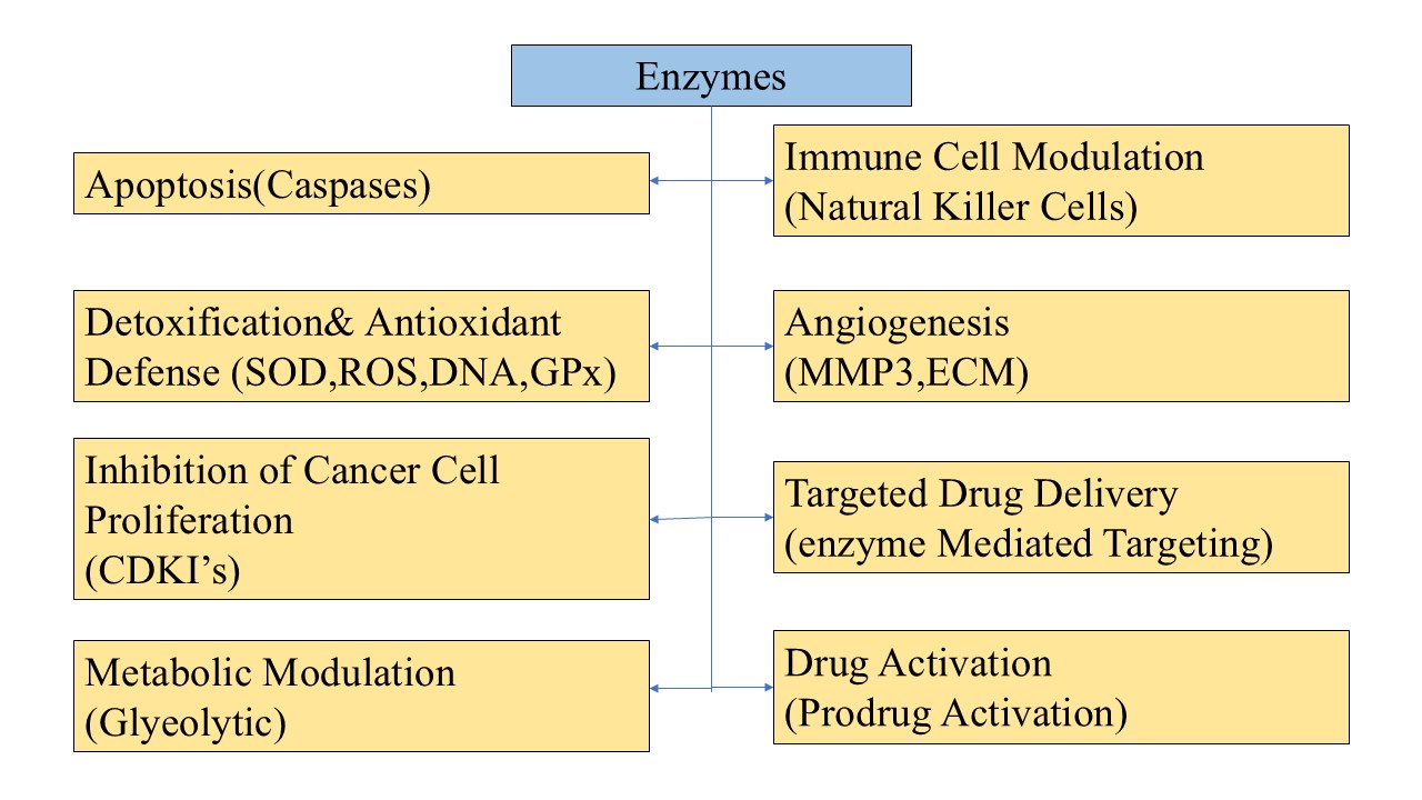 Enzymes play crucial roles in the body's defense against cancer through various mechanisms. They can act directly on cancer cells or indirectly influence the tumor microenvironment and the immune system.