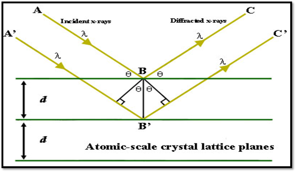 here, d is the space between the diffracting planes,