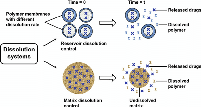 Figure 2: Dissolution-Controlled Drug Release Mechanisms in Reservoir and Matrix Systems17