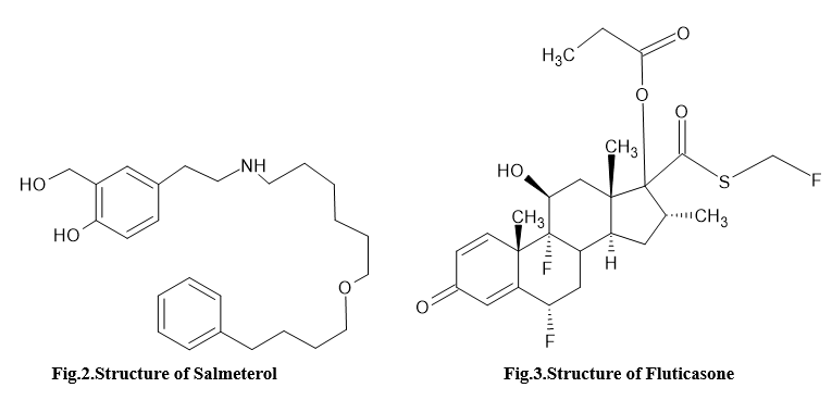 SX is chemically known as,2-(Hydroxymethyl)-4-[1-hydroxy-2-[6-(4-phenylbutoxy) hexylamino] ethyl] phenol; 1-hydroxy-2-naphthoic acid. SX is used to treat chronic obstructive pulmonary disease and asthma [11,12]. Formulated as its 1-hydroxy-2-napthoate (xinafoate) salt, it is a long-acting and highly selective β2 agonist that is used to treat chronic obstructive pulmonary disease and asthma.. SX is inhaled to address asthma flare-ups and, similar to other beta-2-agonists, induces bronchodilation through the relaxation of the airway's smooth muscle. The long-lasting effect takes place as the molecules first permeate the lung cells' plasma membrane, after which they are progressively released back into the extracellular space, enabling them to engage with the beta-2 adrenoceptors, while the lengthy carbon chain serves as a membrane anchor. [13] FP is a chemical compound with the name [(6S,8S,9R,10S,11S,13S,14S,16R,17R)-6,9-difluoro-17(fluoromethylsulfanylcarbonyl)-11-hydroxy-10,13It is utilized for treating asthma, allergic rhinitis, and atopic dermatitis. [14,15] It is a trifluorinated corticosteroid with high potency based on the androstane structure, exhibiting neutral characteristics. Due to its anti-inflammatory properties, it is useful for treating asthma and allergic rhinitis. Additionally, it is employed in treating eosinophilic esophagitis. FP imitates the hormone that occurs naturally and is generated by the adrenal glands, known as cortisol or hydrocortisone. [4]