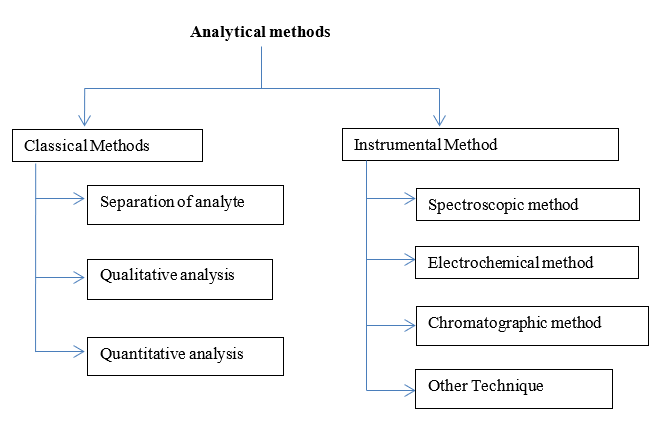 The term “analytical method” refers to the examining a sample to determine its qualitative, quantitative, or structural properties for one or multiple components analyte using a specific methodology and detailed, stepwise instructions. [2]. Analytical procedures: instrumental and classical approaches. (fig. 1). The classical approach involves a signal that correlates to the total amount of the analyte. A method is termed instrumental when the signal correlates with the concentration of the analyte. [3].
