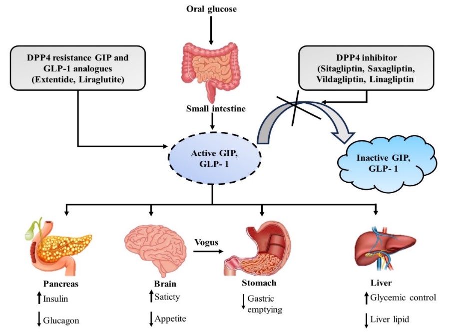 5.1.1. Effects on Glycemic Control: DPP-4 inhibitors prevent the inactivation of incretin hormones (glucagon-like peptide-1 (GLP-1) and gastric inhibitory polypeptide (GIP)). These hormones: