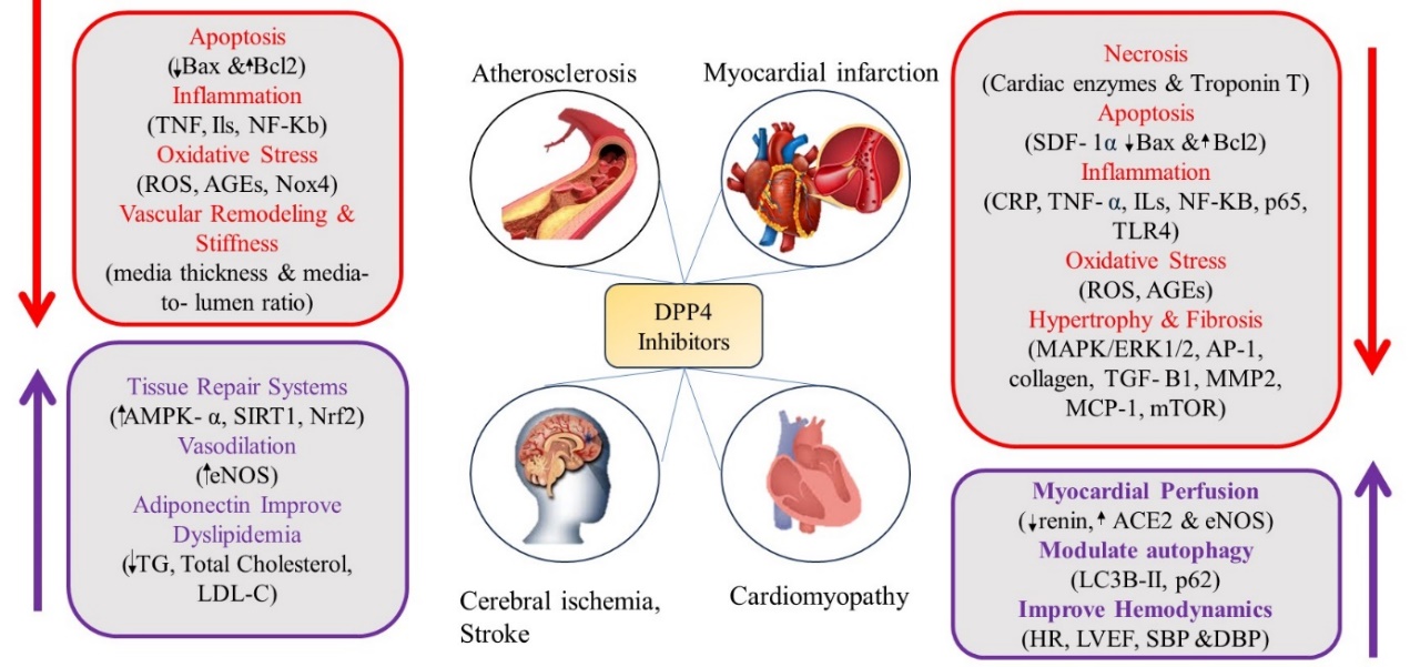 Impact on Cardiovascular Health: DPP-4 Inhibitors for a Healthy Heart: Controlling Cholesterol and Blood Pressure Issues. They fight inflammation, protect cells from damage, provide benefits to blood vessels, and reduce protein excretion in urine [27].
