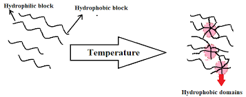 Temperature is the most widely used stimulus in environmentally responsive polymer systems for in-situ gelling formulations because temperature changes are easy to control and can be applied both in vitro and in vivo. In this approach, gelation is triggered by body temperature, eliminating the need for any external heat source. These hydrogels remain in a liquid state at room temperature (20–25 °C) but undergo gelation upon contact with physiological fluids at body temperature (35–37 °C).Temperature-responsive systems are generally classified into three categories and may exhibit either positive or negative thermosensitivity, as seen with polymers such as poly(N-isopropylacrylamide). Common examples of thermoreversible polymers include poloxamers (Pluronics) and tetronics. This technology relies on thermoresponsive polymers that display a sharp and reversible change in physical properties in response to temperature variations. Certain polymers possess an upper or lower critical solution temperature (UCST or LCST), beyond which a miscibility gap appears at either high or low temperatures, leading to gel formation.[23]