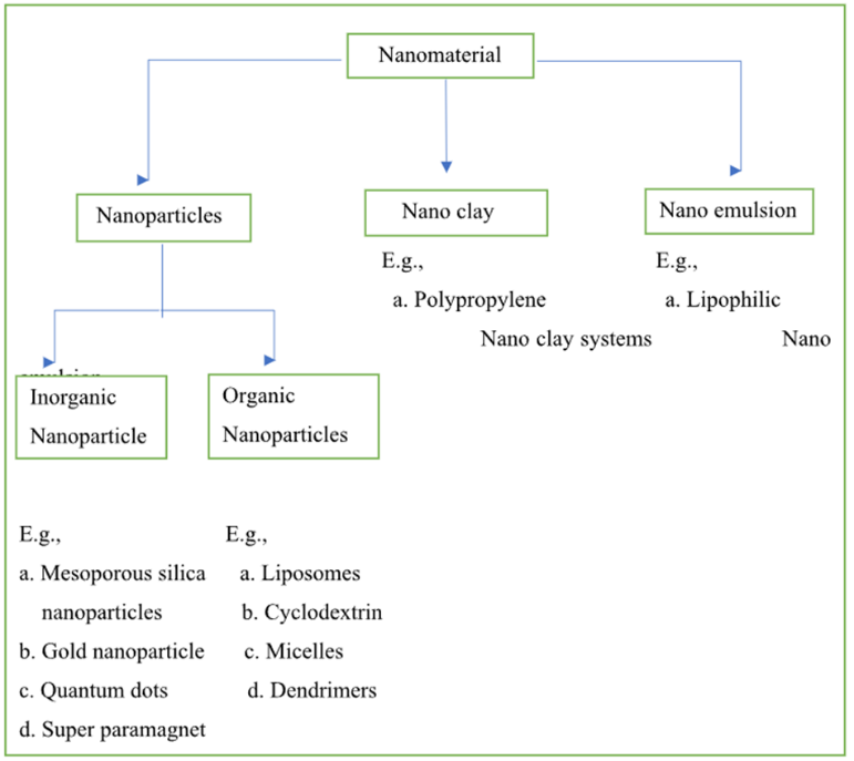 In general, Nanomaterials are classified into three classes such as Nanoparticles, Nanoclays and Nanoemulsions. Figure 5 shows classification of nanomaterials.[35]