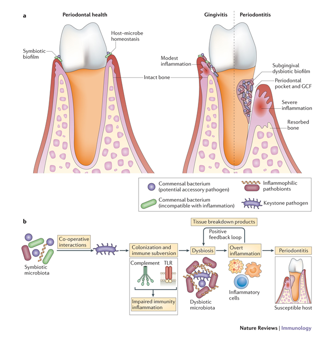 Other health factors, such as diabetes, smoking, and hormone changes, can make the body’s inflammatory response stronger and slow down healing, making pyria more severe (Preshaw et al., 2012). In the mouth, this disease process leads to bleeding gums, gum recession, deep pockets, loose teeth, and eventually tooth loss.