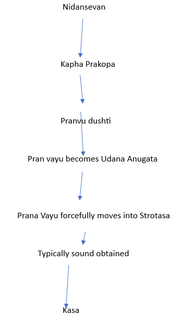Diagnosing Kasa is challenging because it can present either as a primary disease Or as a Upadrava of other conditions. Accurate diagnosis requires understanding its Nidana, Purva Roopa , Roopa , Samprapti , and Samprapti Ghataka, with special focus on the involved Dosha and Dushya.As noted by Charaka, Kasa is a potential Nidanarthakara Vyadhi, capable of progressing to Kshaya. In its acute Stage, it is generally curable through avoidance of causative factors.and adherence to Pathya . If neglected, it may become chronic, leading to sequential depletion of Dhatus—beginning with Rasa , followed by Rakta, Mamsa , and ultimately affecting all bodily tissues. Early dietary modifications, proper lifestyle, and adherence to Pathya while avoiding Apathya can prevent disease progression and improve prognosis.