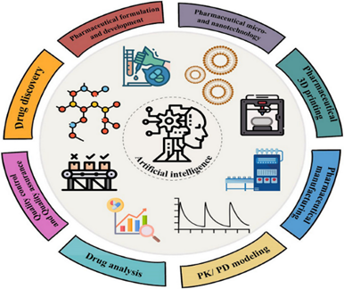 AI is a stream of science related to intelligent machine learning, mainly intelligent computer programs, which provides results in a similar way to the human attention process. Novel pharmaceutical innovations are range from small drug molecules to biologics, with a preference for better stability with high potency to fulfil unmet needs to treat diseases. Artificial intelligence (AI) is being introduced into pharmacy to personalized, efficient, and effective. Recently, AI technology becomes a very fundamental part of the industry for useful applications in many technical and research fields. An introduction to a review article on AI in pharmacy often defines AI as a field that uses intelligent algorithms to solve complex problems, and highlights its growing importance in key pharmacy areas like drug discovery, clinical decision-making, and operational efficiency. It emphasizes that AI, driven by advances in machine learning and large datasets, is transforming the industry by making processes faster and more cost-effective, from identifying drug targets to personalizing patient care. Numerous industries are striving to enhance their progress to meet the demands and expectations of their customers, utilizing various methodologies. The pharmaceutical industry is a critical field that plays a vital role in saving lives. It operates based on continuous innovation and the adoption of new technologies to address global healthcare challenges and respond to medical emergencies, such as the recent pandemic. In the pharmaceutical industry, innovation is typically predicated on extensive research and development across various domains, including but not limited to manufacturing technology, packaging considerations, and customer-oriented marketing strategies. Novel pharmaceutical innovations are range from small drug molecules to biologics, with a preference for better stability with high potency to fulfil unmet needs to treat diseases.