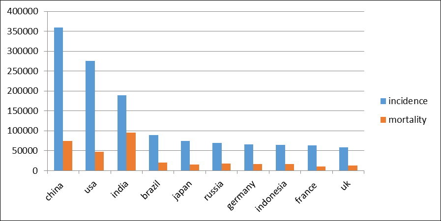 Geographic Variations: There are notable regional differences in incidence rates. Higher incidence rates are typically reported in high-income nations, most likely as a result of improved detection and lifestyle variables. Conversely, countries with lower incomes tend to record lower rates, but because they may have fewer access to screening and treatment, they may also have greater mortality (Ferlay et al., 2020).