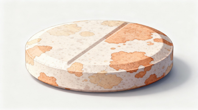 Definition: Mottling is characterized by uneven colour distribution on tablet surfaces, with light or dark spots appearing on an otherwise uniform surface.