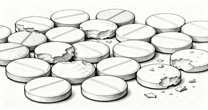 Film wear at tablet edges – increase film hardness, optimize pan speed, modify tablet punch design.