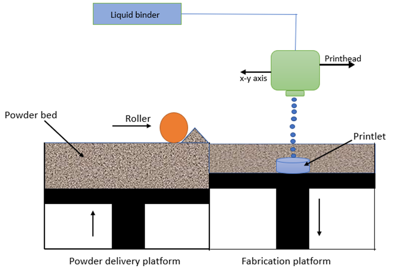 Figure 1 Schematic Representation of Binder Jetting Printing