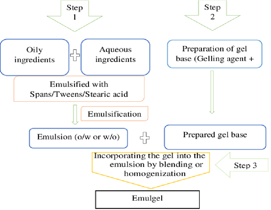Emulgel Formulation: Traditional topical formulations such as ointments, creams, and lotions suffer from stickiness, poor spreadability, and lack of stability, and so transparent gels have become increasingly popular in both cosmetics and pharmaceuticals.