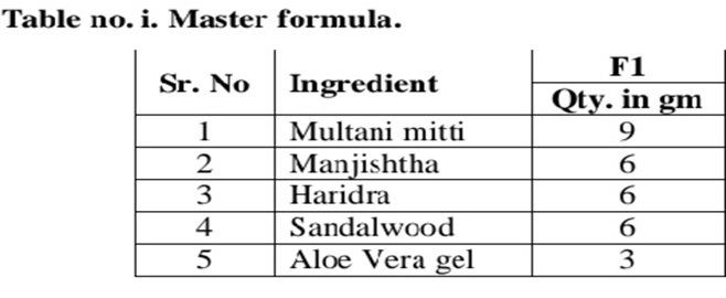 Table no.i. Master Formula.