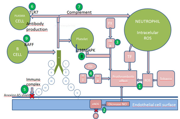 In conclusion, it is evident that a variety of mechanisms may act independently, or in conjuction, to lead to the clinical features associated with APS. The challenges is to determine with venous and/or arterial thrombosis, and pregnancy loss, as well as the key mechanisms in the non-criteria manifestitions ofAPS.