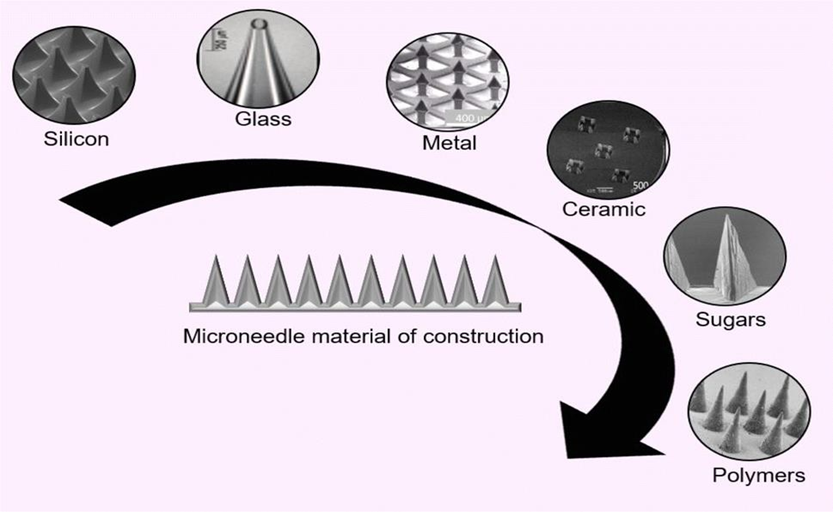 Silicon: Silicon micro-needles are popular due to their sharpness and precision in penetrating the skin. They are often used in solid micro-needles. MNs made of metals like stainless steel, titanium, and aluminum, are non-toxic and possess strong mechanical properties to penetrate the skin without breakage.