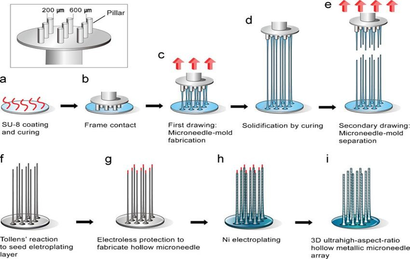 History of Micro needles: During 1905, Dr. Ernst Kromayer, a German dermatologist (skin doctor), preserved damaging, hyper active pigmentation, then other skin disorders by means of changed dimensions of power-driven dental burst (Dentist). The main part of poetry those discussions micro-needle usage be located in 1921 by Compartments anywhere she injected her needle hooked on the egg cell placing. In the 1960s, transporting medicines by inoculation inside the stratum corneum activated in the direction of is a magnet for concentration. After, the micro needle thought be located introduced in the 1970s though, this thought was non-established experimentally up to the 1990s. In 1979, the primary transdermic organization remained accepted used to distribute scopolamine (sedative, hypnotic drug) through put on a three days patch to remedy sign disorder. In 1994, a sequence surgical procedure remained performed through Orient Reich anywhere he injected a try-bevelled hypo dermal needle hooked on the skin to discharge rubbery components. This surgery targeted the coetaneous deficiencies placed below the skin which remained to blame designed for miserable scars and wrinkles. The primary micro needle for transdermic distribution remained suggested in 1998 then be located made-up since silicon crackers finished particle engraving then photo lithography. The study defined the usage of micro made-up micro needles designed for the reason of improve drug delivery crossways the membrane. These papers directed to wide-ranging investigate directed in the micro needle field. Different ingredients such as glass, ceramic, metallic, and polymer remained presented to manufacture micro needles. In 2004, a micro needle arrangement was used to penetrate holes interested in the skin for transdermic drug transfer, which led to some manufacture technique too material individual explore designed for the reason of TDD. Solid, coated, hollow, dissoluble, and hydro gel-creating MNs remain all dissimilar categories of MNs. additionally, a variety of manufacturing technique such as laser abstraction, photo lithography, micro-inoculation moulding etc. This discovery led in the direction of the primary information of a dissoluble micro needle actuality used for TDD in 2005. According in the direction of clinical Trials Gov. Website towards 43 clinical trials contain be finished by means of micro needles, through the primary micro needle clinical testing finished in 2007 (accessed on 30 June 2021, 5 p.m.). Freshly, additive manufactured approaches to production MN moulds be located established to supply inferior price solution for micro mould manufacturing. Information viewing the usage of commercially presented 3D printer to manufacture the MN leading mould accessible a novel phase in piece of equipment manufactures and potential for tradition constructed large volume manufacturing of MNs.