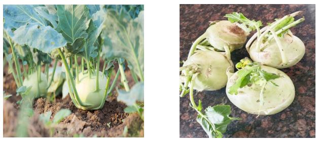 Knol-khol (Brassica oleracea var. gongylodes), belonging to the family Brassicaceae, is a cool-season vegetable crop. Its primary center of origin is believed to be Northern Europe. Commonly known as kohlrabi (a German term meaning “cabbage turnip”), it resembles a turnip that develops above the ground. In India, both the leaves and the swollen stem (knob) are consumed, whereas in Europe, only the knob is typically used. In India, knol-khol is extensively cultivated in Jammu and Kashmir and West Bengal, and to a lesser extent as an exotic vegetable in parts of Maharashtra, Assam, Uttar Pradesh, and Punjab [1]. The knob of knol-khol is consumed either raw or cooked and is commonly used in salads and pickles. The tender leaves are also cooked as a vegetable. Knol-khol possesses significant nutritional and medicinal value. Per 100 grams of its above-ground stem, it contains approximately 51 mg of phosphorus, 372 mg of potassium, 41 mg of calcium, 0.5 mg of iron, 20 µg of vitamin A, 0.06 mg of thiamin, 0.04 mg of riboflavin, 0.03 mg of niacin, and 66 mg of vitamin C. It is also rich in bioactive compounds such as sulforaphane and other isothiocyanates, which act as antioxidants and are believed to enhance the body’s production of protective enzymes. The demand for knol-khol is rising due to its reported anti-hyperglycemic and anti-carcinogenic properties [2]. Additionally, it serves as an excellent source of dietary fiber and antioxidant compounds, including vitamins A, C, E, and β-carotene. The plant provides a broad spectrum of therapeutic benefits, including the treatment of acidosis, asthma, cancer, high cholesterol, heart disease, indigestion, muscular and nerve disorders, prostate and colon cancer, skin conditions, weight management, and various other health issues [3]. Knol-khol is rich in phytochemicals such as alkaloids, glycosides, steroids, flavonoids, saponins, tannins, terpenoids, and phytosterols, which contribute to its significant medicinal value and potential in treating various diseases [4].