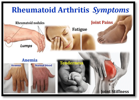 Chronic autoimmune disease called rheumatoid arthritis (RA) primarily affects the joints but can also affect other body organs and tissues. Individuals with RA may exhibit a wide range of clinical symptoms, and the disease’s progression could alternate between remissions and flare-ups. Here are a few typical rheumatoid arthritis clinical signs and symptoms.
