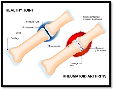 Fig. 2: Difference between Normal joints and Rheumatoid Arthritis joints