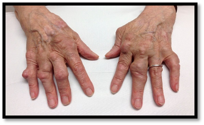 In conclusion, Rheumatoid Arthritis (RA) is a chronic autoimmune disorder that primarily affects the joints, causing inflammation, pain, and joint damage. It is characterized by an abnormal immune response that leads to the attack of the synovial membrane, resulting in chronic joint inflammation. While the exact cause of RA remains unclear, a combination of genetic, environmental, and immune system factors is believed to contribute to its development. RA can affect people of all ages and genders, but it is more common in women and tends to start between the ages of 30 and 60. The disease often presents with symmetrical joint involvement, joint pain, swelling, stiffness, and reduced range of motion. In addition to joint symptoms, RA can have systemic effects, causing fatigue, low-grade fever, and other systemic manifestations. If left untreated, RA can lead to joint damage, deformities, and disability, significantly impacting a person's quality of life. Early diagnosis and prompt treatment are essential to manage symptoms, slow down disease progression, and prevent joint damage.