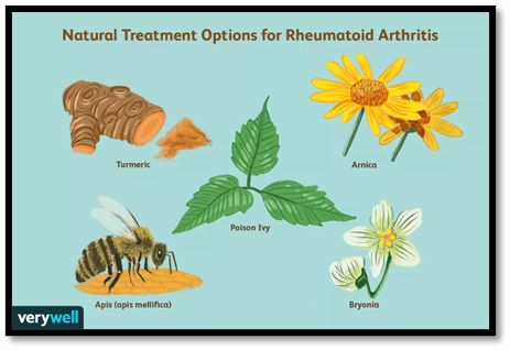 In homeopathy, arnica is indicated for RA when joints are tender to the touch. Arnica is an anti-inflammatory agent that has been shown to lower markers of inflammation in laboratory studies.