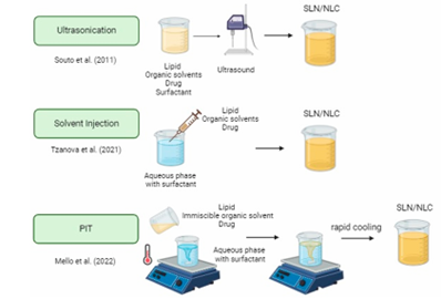 SLN was also synthesised through high-speed stirring or sonication (Eldem et al., 1991). The tools required for this technique are standard in almost every laboratory. A key drawback of this method is the extensive particle size distribution that extends into the micrometre range, which is a leading cause of physical instability (Svilenov and Tzachev, 2009). Concerns such as particle growth during storage and the risk of metal decay are pressing issues in this approach. After extensive studies and thorough research, it has been confirmed that high-speed stirring and ultrasonication, when used together at high temperatures, produce a reliable formulation.[14]